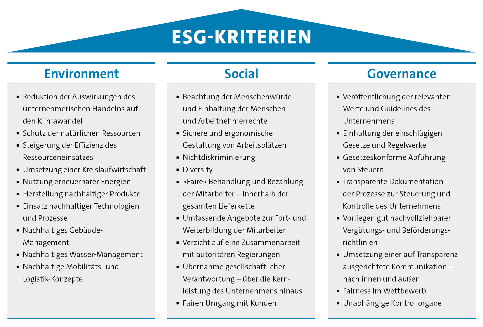 ESG-Kriterien als Anforderungsprofil für Unternehmen und Unternehmensführung